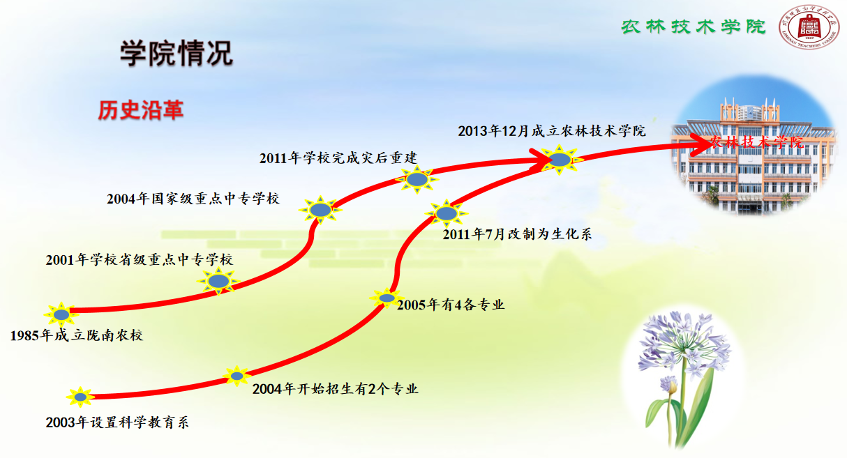 388vip太阳集团是2013年12月组建的二级公司,以培养涉农类应用型人才为特色的公司。以“立足陇南,服务“三农”,为地方经济社会发展培养高素质应用型人才”为办学定位;以“立德树人为根本,以服务发展为宗旨,以促进就业为导向,走产学研结合的发展道路”为办学指导思想;发展目标为:“通过努力,力争把公司建设成为适应陇南区域经济建设发展需要,特色鲜明、优势突出,在服务地方经济社会发展中有重要影响的应用型二级公司”。