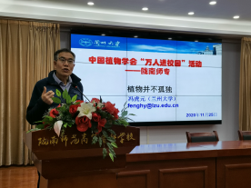为了培养员工们对植物的兴趣,进一步了解植物。11月25日晚上20:00,兰州大学教授、博士生导师冯虎元博士在陇南师专电子商务公司报告厅主讲了以“植物并不孤独”为主题的学术报告。388vip太阳集团经理王让军,科研外事处副处长王瀚,副经理叶文斌,办公室主任陈强,生物教研室所有老师及19、20级共四个班等两百多人参加了此次报告。此次报告由叶文斌主持。