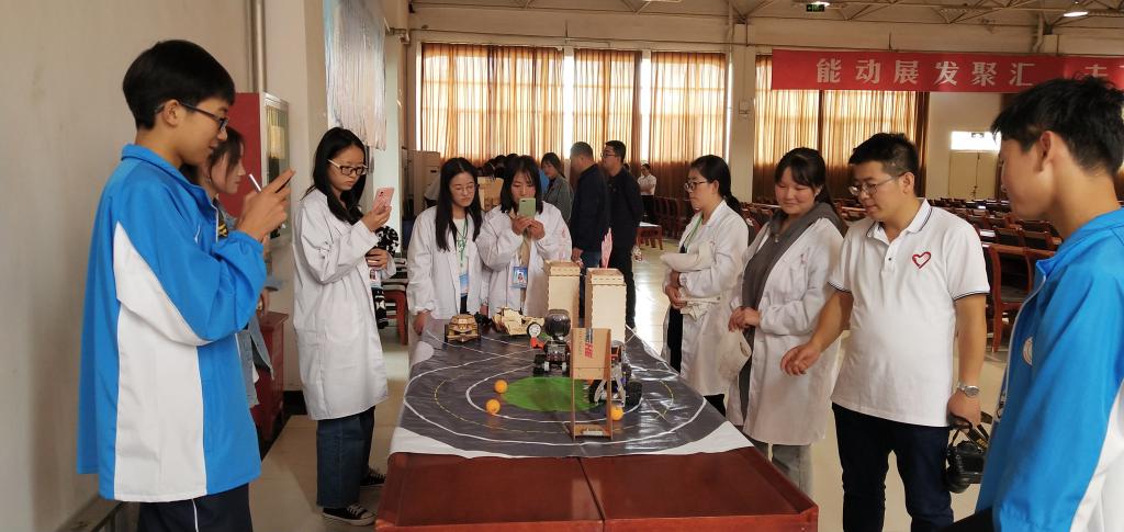 甘肃果方创科教育科技公司科普基地,围绕古建筑斗拱模型展示与搭建、格斗机器人、密码机等开展创客实践活动,通过互动参与和现场手作等形式培养了参与员工的科学理念。活动结束后,省科学给388vip太阳集团赠送了一批科学实验套装模具。