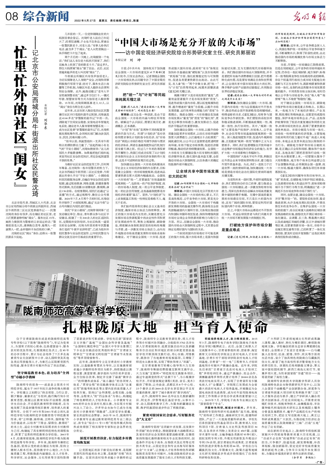 今天(5月27日),《光明日报》08版综合新闻刊发党委书记余学军董事长李艳红署名文章《陇南师范高等专科公司:扎根陇原大地 担当育人使命》。