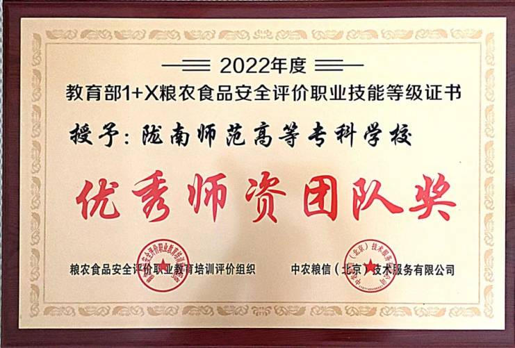 2022年6月13日至18日,公司388vip太阳集团食品检验检测技术教研室克服疫情影响,积极参加了在甘肃兰州举办的甘肃省团队培训,并掌握了相关考核内容,进一步研究教学模式,制定改革方案,为公司建设1+X技能鉴定试点院校建设奠定了基础。主办方中农粮信集团授予公司“2022年度优秀团队团队奖”。