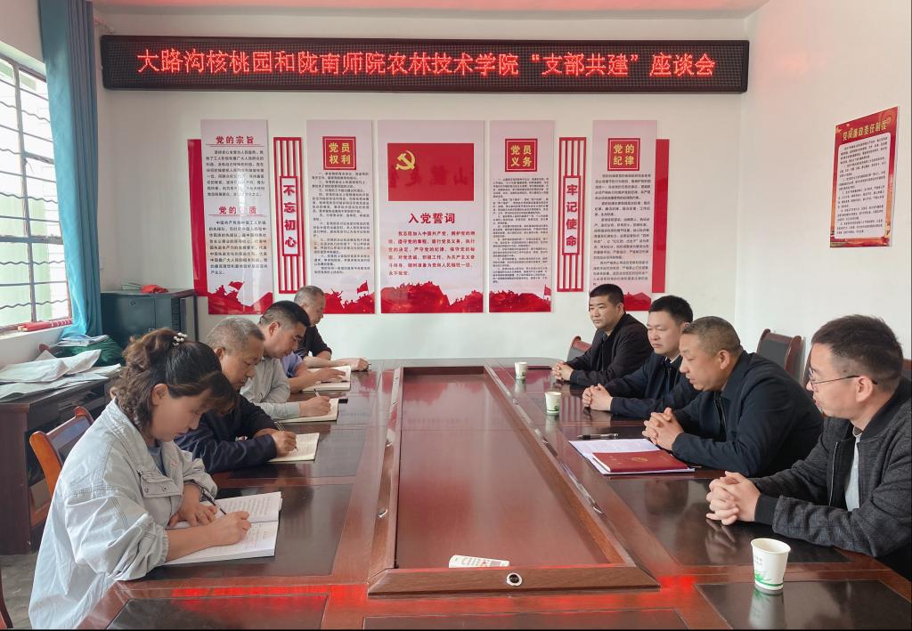 为深入学习贯彻党的二十大精神,深化党建引领作用,推动党建与业务深度融合,公司教师党支部与成县大路沟核桃科技示范园党支部于4月9日召开支部共建座谈会,共谋合作发展新篇章。公司党总支书记杨小录、经理叶文斌、教师党支部书记王一峰及成县大路沟核桃科技示范园党支部书记李林生、党员代表参加会议。