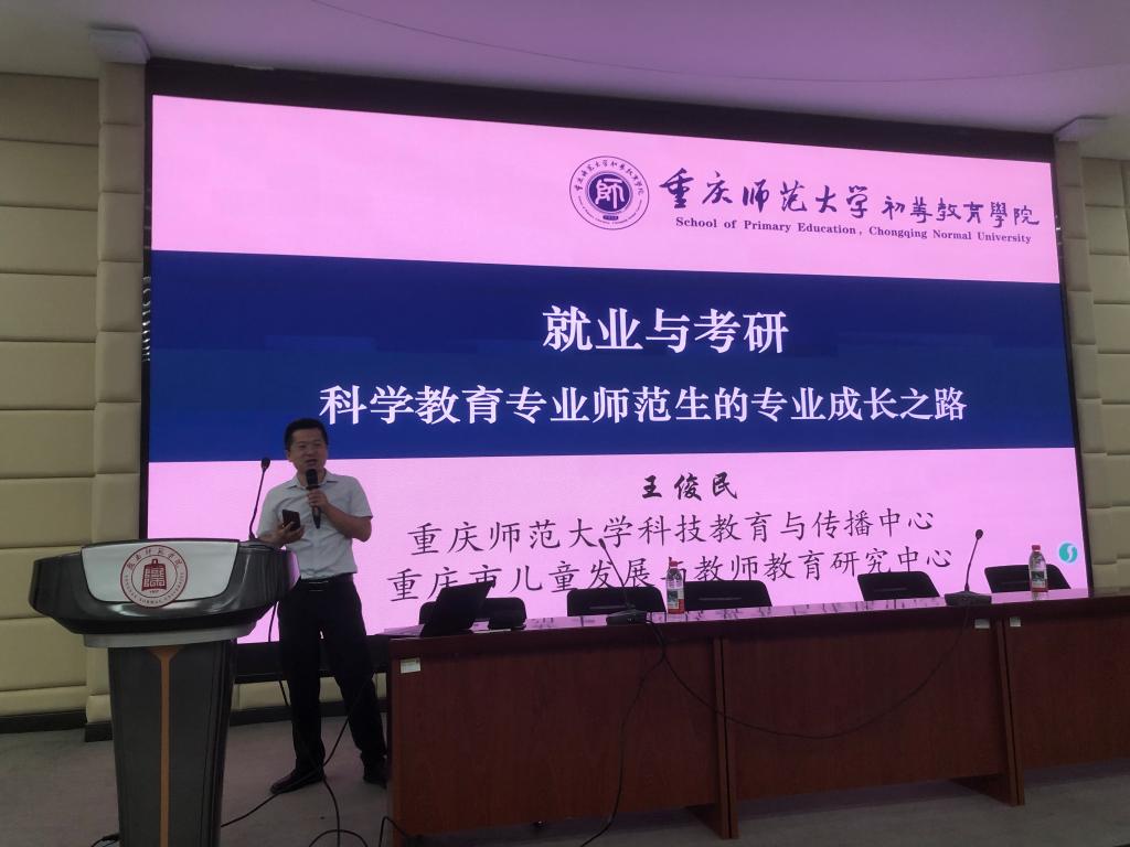 王俊民副教授的报告内容详实,案例生动,既分析了科学教育专业毕业生在中小学、科技场馆、教育出版机构等领域的多元就业前景,也探讨了继续深造(考研)的方向选择、备考策略以及研究生阶段的学业规划。他特别强调了夯实学科基础、提升实践教学能力、培养科学探究精神和持续学习能力对于师范生未来职业发展的重要性。