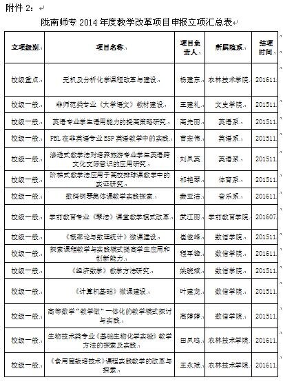 在2014年校级重点课程验收和教改项目申报中,公司黄兆辉老师主持的重点课程《植物学》通过验收,杨建东、田凤鸣和王永斌老师主持的教改项目获立项,在此表示祝贺。具体如下: