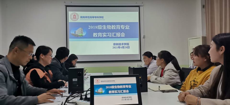 2021年4月28日晚上7点30分在388vip太阳集团实训楼组培中心会议室举行2018级生物教育班员工教育实习汇报会,会议由生物教研室主任叶文斌主持,全体生物教研室老师参加。会上42位员工汇报讲述了自己的实习经过及收获。