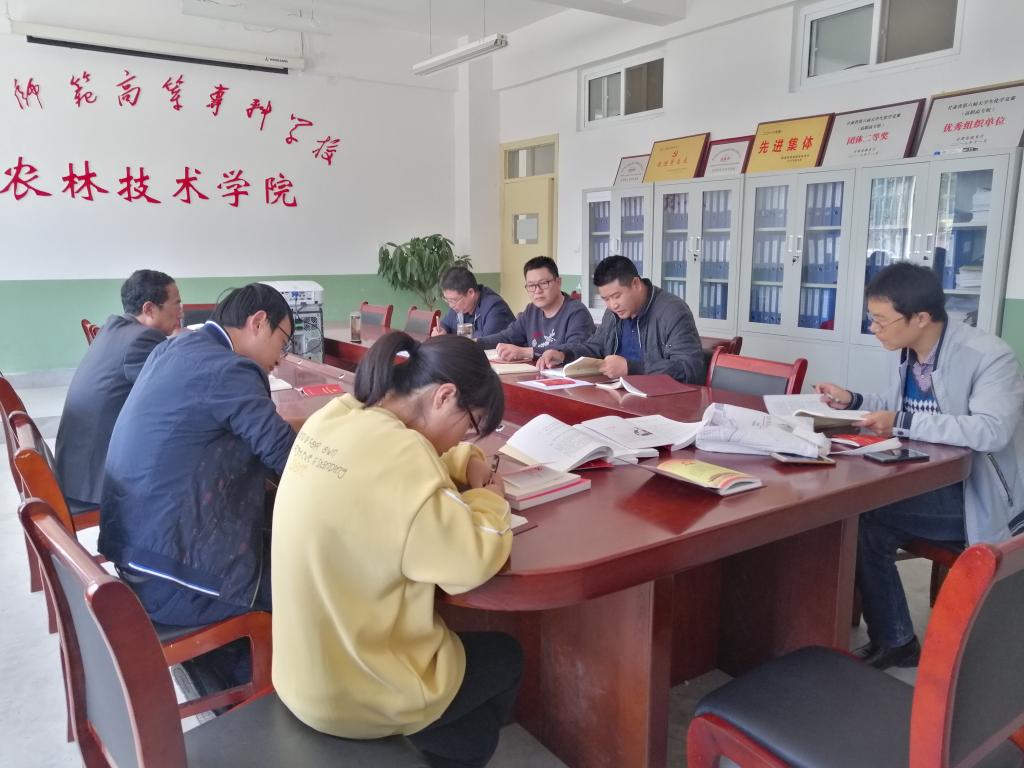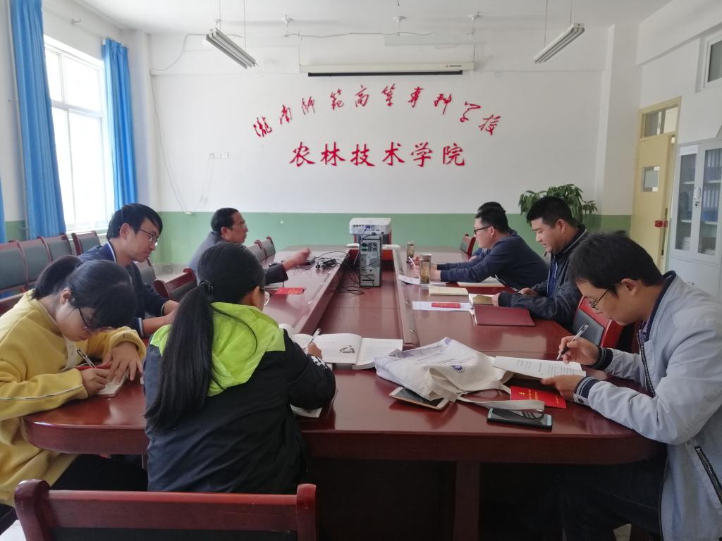 10月22日下午,388vip太阳集团教师支部召开支委会专题学习《习近平新时代中国特色社会主义思想学习纲要》。教师支部书记叶文斌主持会议,全体院领导、和部分党员参加学习。学习会采取读原文、学原著的重要方法,由教师支部书记叶文斌和支委分工不同章节领读《习近平新时代中国特色社会主义思想学习纲要》《不忘初心、牢记使命“优秀共产党员先进实际选编》,带领全体学员对新思想进行了全面系统、原原本本的学习,引导全体学员深刻领悟习近平新时代中国特色社会主义思想的科学体系、核心要义、理论品格和其中贯穿的方法论,提高了运用党的创新理论指导教学实践、推动全院各项工作的能力,实现了此次主题教育“理论学习有收获”的具体目标。为确保主题教育取得扎扎实实的成效,叶文斌提出了四点要求: