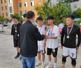 在比赛场上,运动员们激情澎湃,团结协作,勇于拼搏,使得比赛有条不紊的进行。在此期间,各班的啦啦队员们在旁边呐喊助威,加油鼓气,使比赛的氛围更加强烈。最终,本次比赛大三获得了第一名,2020级畜牧兽医班为第二名;2021级小学科学教育一班为第三名,何玉鹏老师分别为其颁发了奖杯,随着颁奖仪式的结束,比赛也接近了尾声。