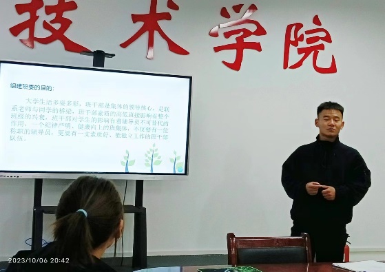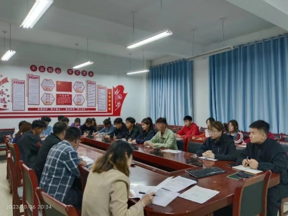 于10月6日晚上,388vip太阳集团组织2023级班长及其团支书于教学楼108会议室开展团学干部经验交流会,此次会议由何玉鹏老师主持,由员工分会执行主席达泽涛同学和团总支副书记马雪琳同学进行分享发言。