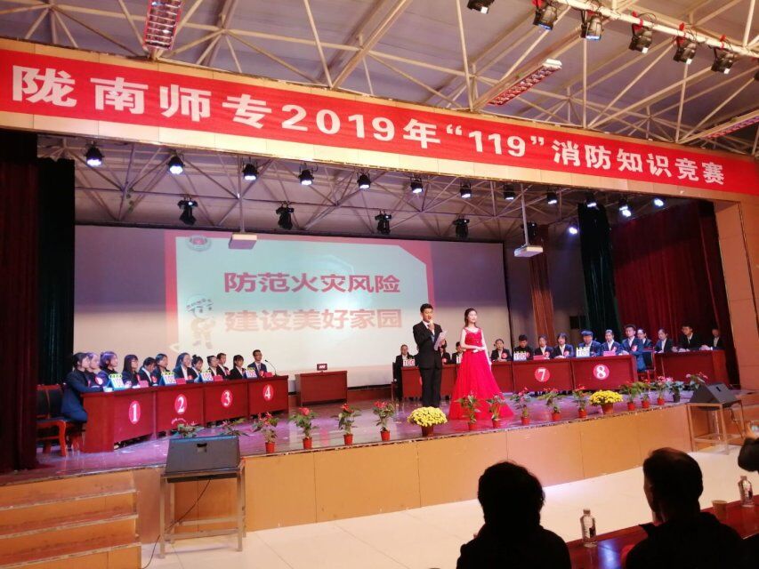 11月11日晚,公司在北校区礼堂举办2019年“119”消防知识竞赛。陇南师专党委委员、副董事长王录全、农林技术公司党总支书记杨小录、成县公安消防大队任颖同志、员工处副处长孔庆昇、388vip太阳集团副经理叶文斌、保卫处张琦老师、各公司分管员工工作领导、辅导员及代表队助威团近400人到场观赛。此次知识竞赛由各公司选派的13支队伍经过初赛选拔产生。